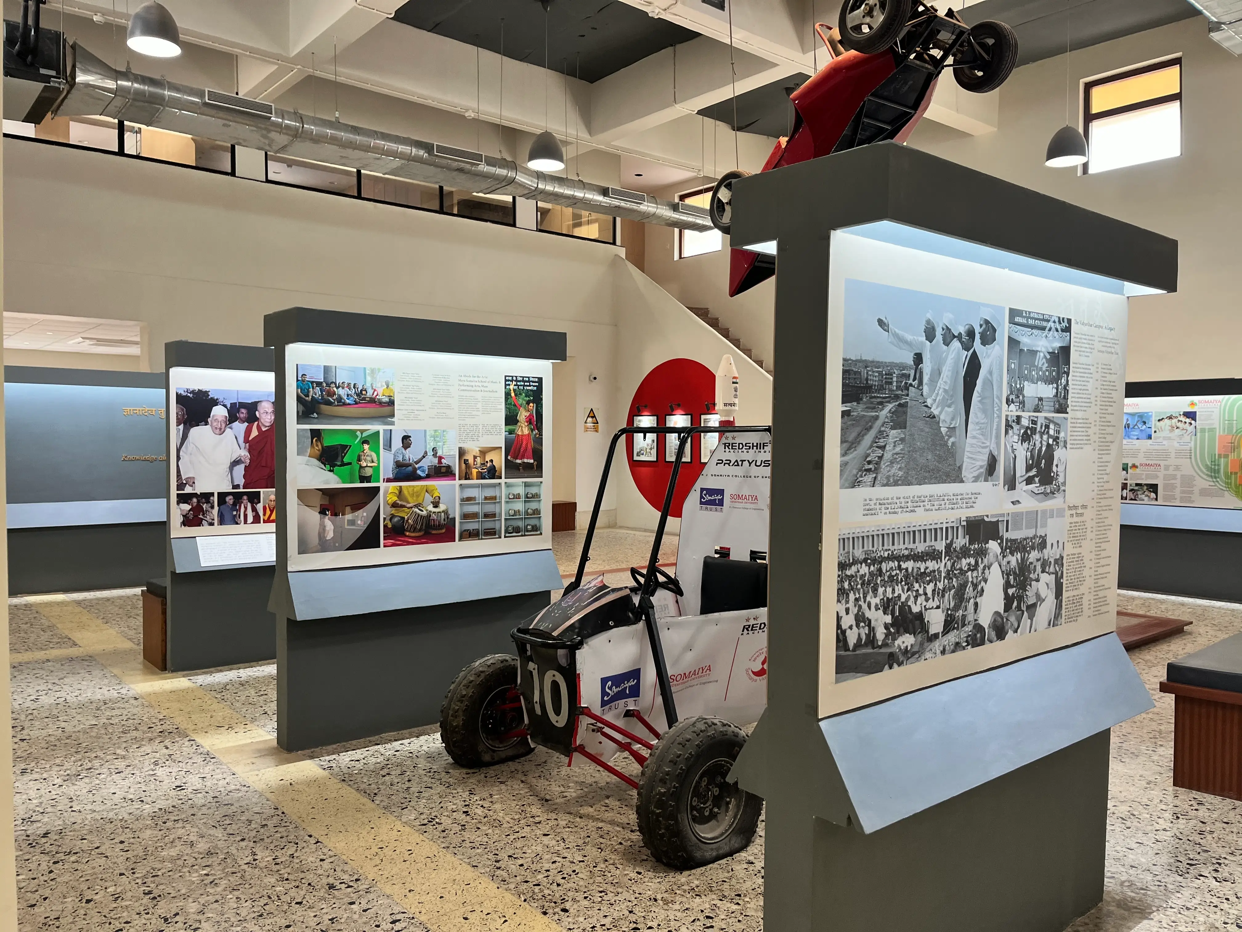 The Welcome Centre at Somaiya Vidyavihar is a project of adaptive resuse. The building was originally used by a women's cooperative for production of pickle and 'paapad'. After the organisation was shifted to a more suitable location, the place went into dis-use. The brief of the Welcome Centre revolved around the idea of creating a space for students, parents of wards and visitors. The intention was to provide adequate information about the University , it's offerings and the philanthropic origins of Somaiya Vidyavihar.